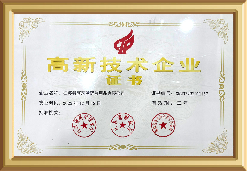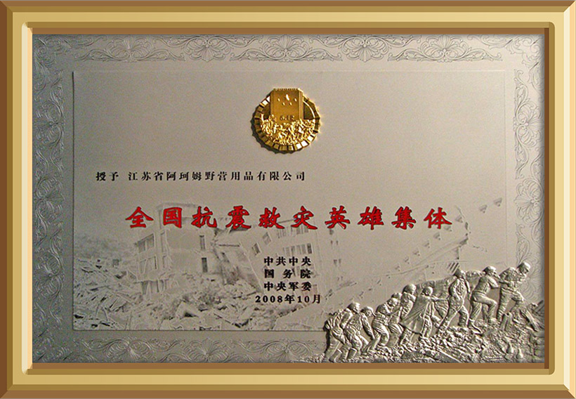Acome has won the honorary titles of "national earthquake relief hero collective", "advanced collective of Jiangsu Province supporting earthquake relief", "East China (Jiangsu) camping equipment mobilization center", "high tech enterprise", "Yangzhou top 100 industrial private enterprises", etc. The market share of outdoor sports equipment produced by Acome has been increasing, and it has become more and more qualified manufacturers of first-line brands at home and abroad.